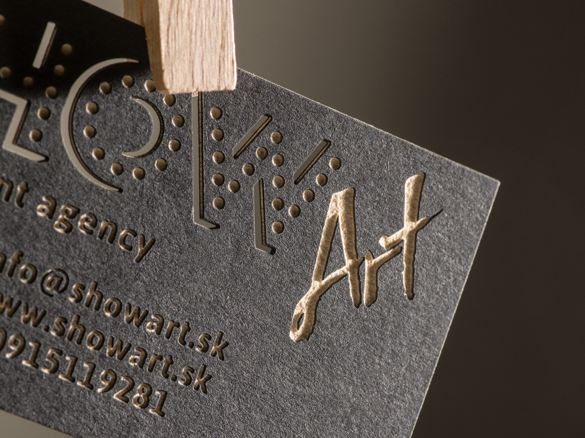Double-sided black business card with two-colour foiling, copper and silver. Laser cut and engraved business card on black and beige triplex paper.Laser cut and engraved business card on black and beige triplex paper.Business card with copper foiling and CMYK printing on velvet-like red paper (Pulsar Red).Double-sided laser engraved business card on black and yellow triplex paper. Business card design printed with Xerox Iridesse White Dry Ink and CMYK on silver metallic paper.Double-sided CMYK business cards with charts for appointments.