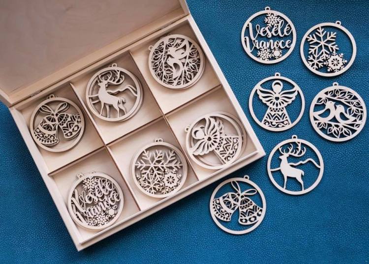 Kanovits Print’s laser-cut wooden and acrylic ornaments for the agency’s online store.